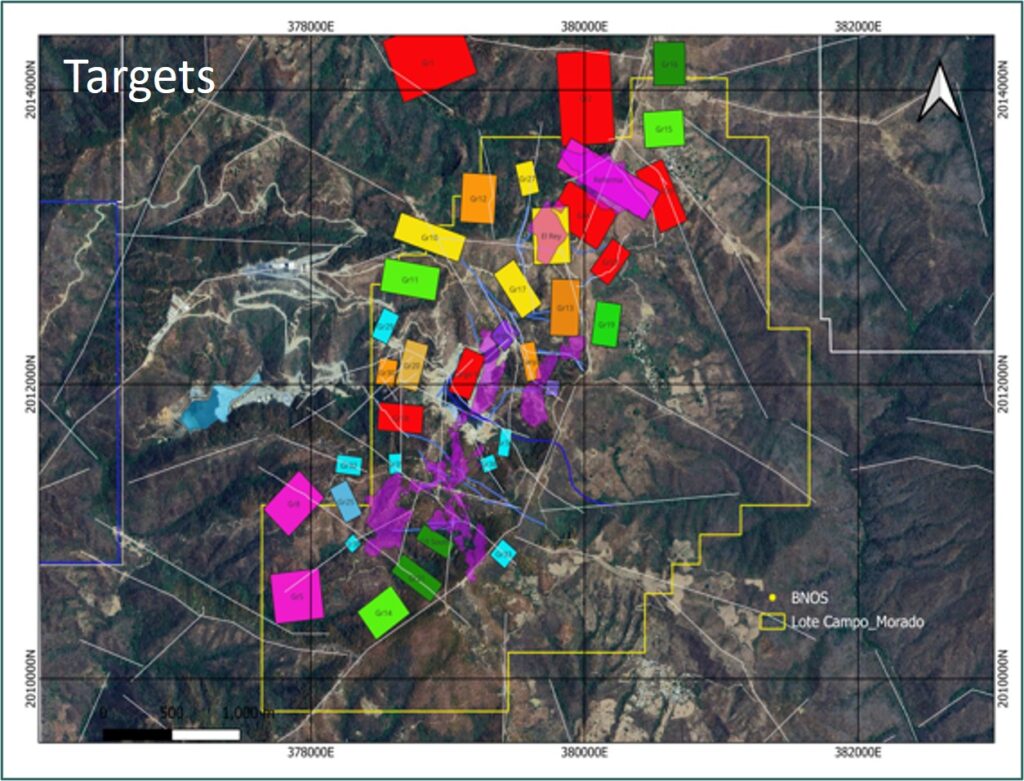 Previous exploration at Campo Morado has combined to produce an extensive set of high-quality, proprietary geological data, including over 600,000 meters of underground and surface drilling, property wide geologic/structural mapping, approximately 30,000 geochemical soil samples, and a variety of airborne and ground-based geophysical surveys (including gravity, electromagnetics, and induced polarization). Analyses of these geophysical survey datasets, particularly gravity, resulted directly in the discovery and definition of mineral resources on the Property and will continue to guide all exploration initiatives; moreover, this large geophysical dataset is currently being compiled, cleaned and reinterpreted by Luca in an effort to prioritize the greater than 38 exploration targets identified to date across the Property. See attached exploration target map. Production from Campo Morado has been exclusively from five deposits; G9, El Largo, Reforma, Naranjo and El Rey. <Listen to Luca CEO, Dan Barnolden discuss this news>